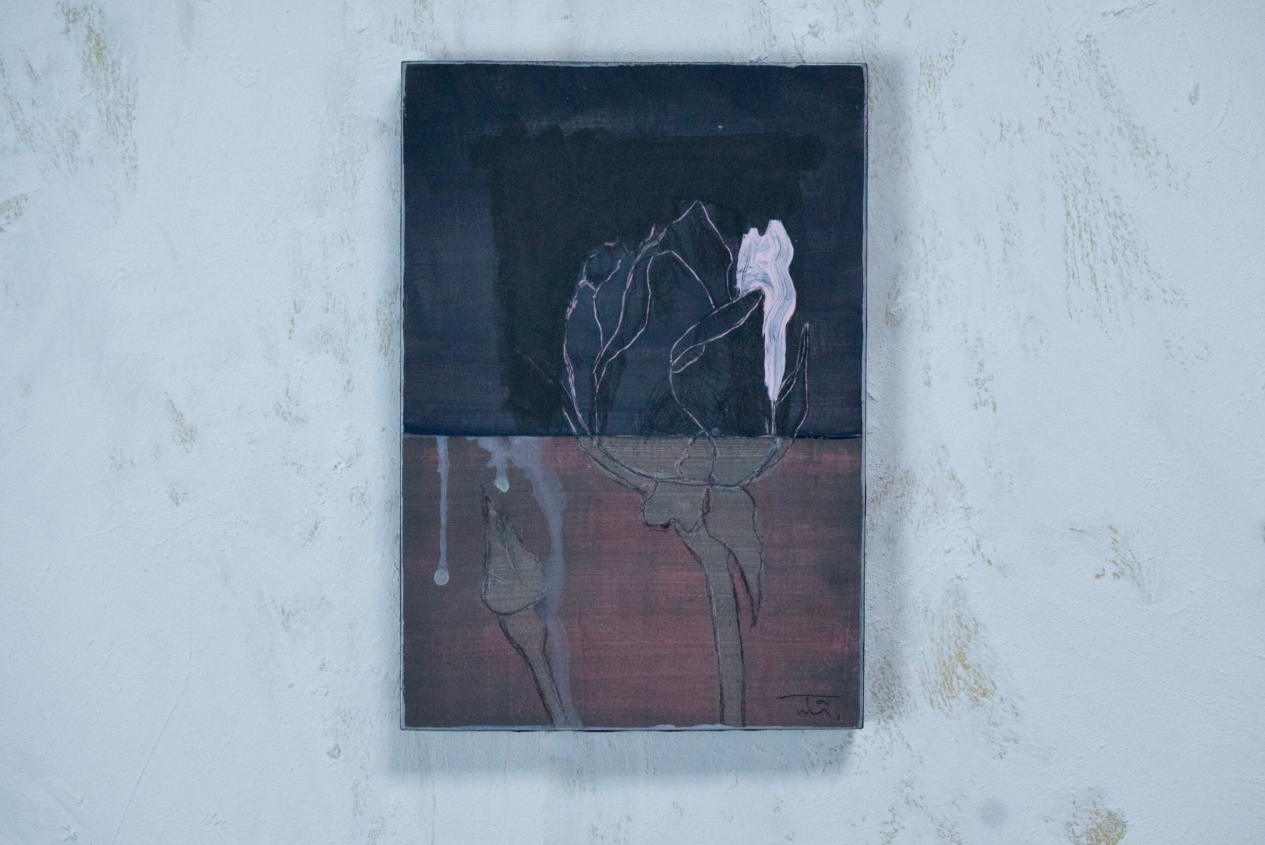 作品解説:この作品を描いた時、この作品の佇まいが古い本のように感じました。大事な本を愛でるような気持ちでこの作品をご覧いただけたらという気持ちでこの作品のタイトルをつけました。
