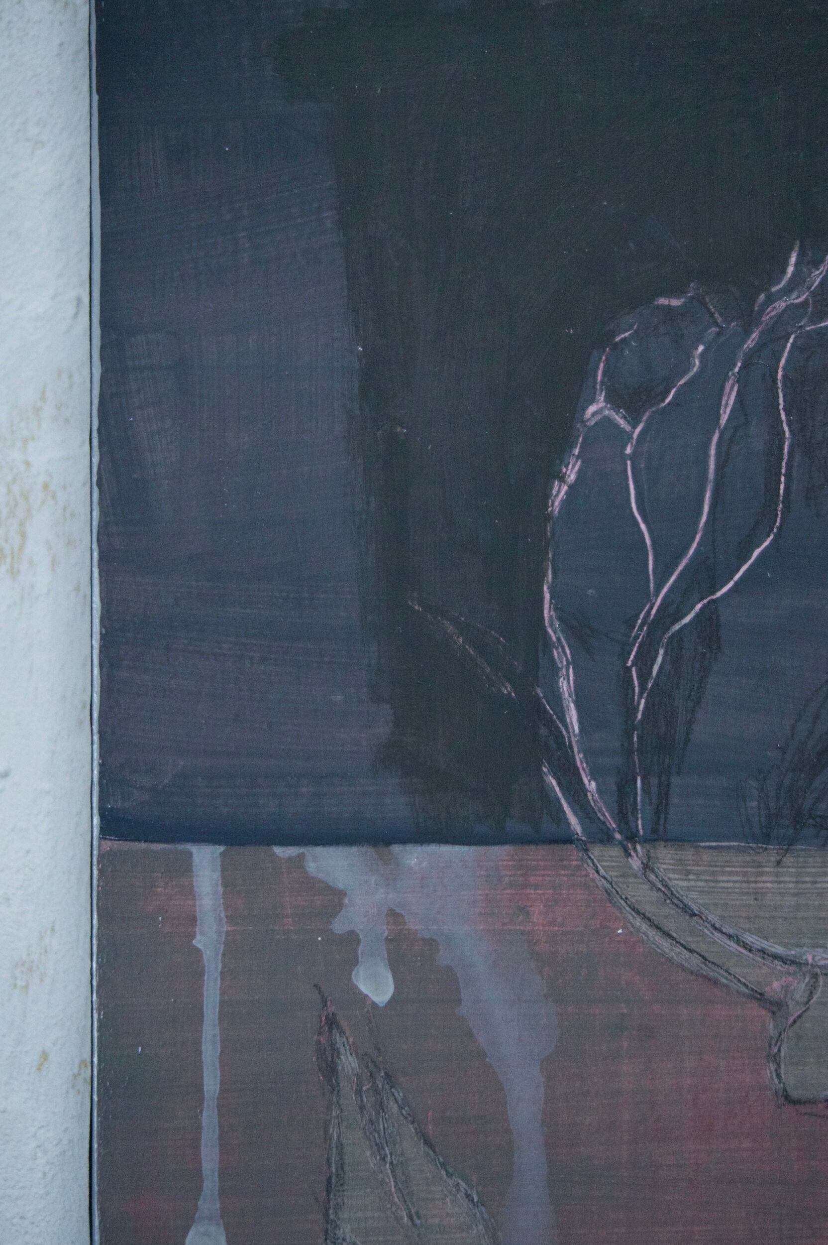 素材:木製パネルにアクリル絵の具・木炭等